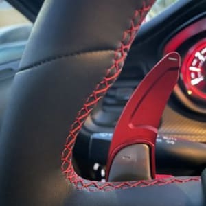 Красные ремни, красная строчка на руле.