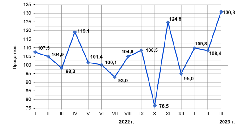 По данным Кировстата, в 1 квартале 2023 года по сравнению с аналогичным периодом прошлого года увеличился выпуск продукции обрабатывающих производств на 19,1 процента. Объемы добычи полезных ископаемых выросли на 7,5 процента.