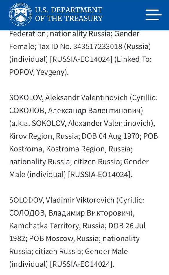 Госдепартамент США опубликовал очередной список чиновников, депутатов, бизнесменов и ученых, в отношении которых введены санкции.