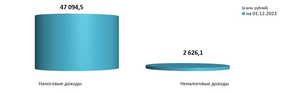 На 94,7% объем собственных доходов сложился за счет поступлений налоговых доходов (47 094,5 млн. рублей).