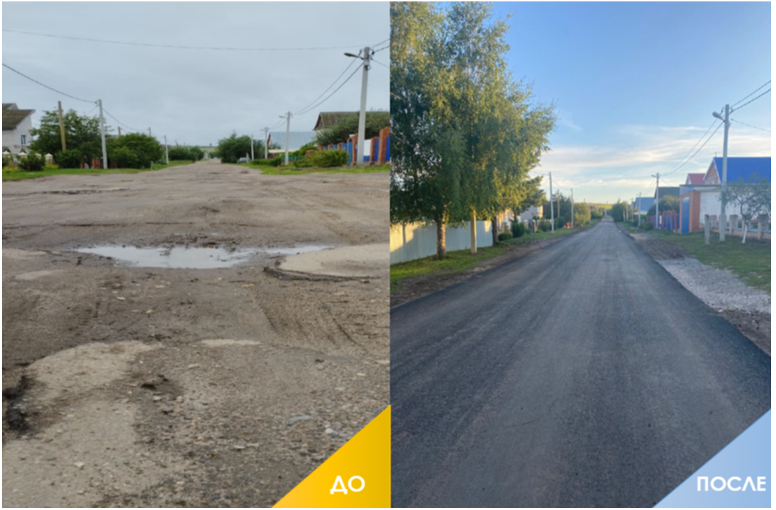До и после реализации инициативного проекта «Восстановление изношенных верхних слоев покрытий с устранением деформаций и повреждений покрытия на автомобильной дороге ул. Солнечная в г. Уржуме Кировской области»