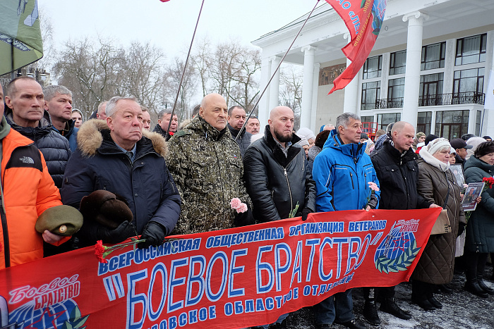 Глава региона Александр Соколов вместе с ветеранами и членами семей погибших возложил цветы к монументу участникам локальных конфликтов. Губернатор отметил, что родные и близкие павших бойцов тоже герои нашего времени, поскольку вырастили сыновей героями, были рядом с мужьями-героями и мужественно пережили тяжелое время.