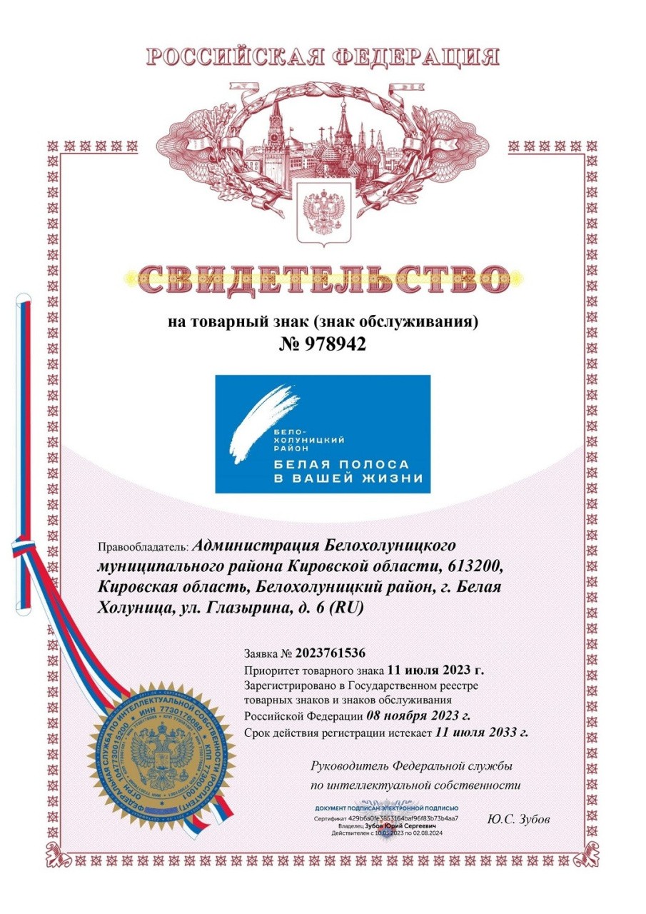 – Бренд "Белая полоса в вашей жизни", представленный летом 2023 года, теперь защищен законодательством, – сообщили в администрации района.