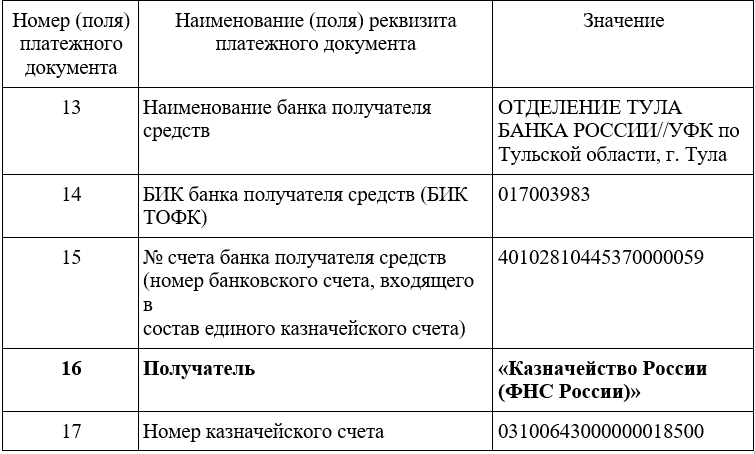 По ранее оформленным платежным документам с указанием получателя «Управление Федерального казначейства по Тульской области (МИ ФНС России по управлению долгом)» денежные средства будут зачислены по назначению.