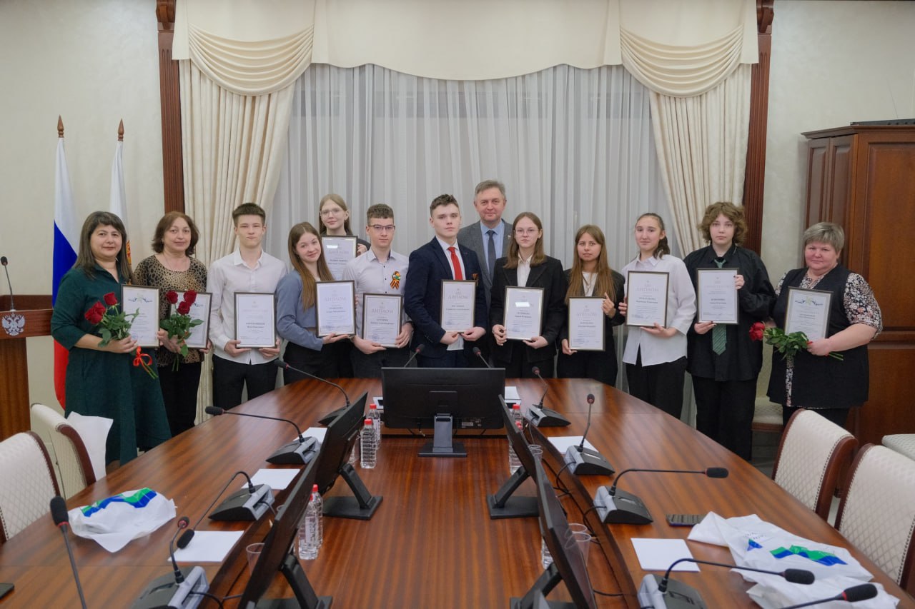2 мая Председатель Законодательного Собрания Кировской области Роман Береснев провел встречу с победителями и участниками областного конкурса сочинений «Если б я был депутат…», приуроченного к 30-летию ЗСКО.