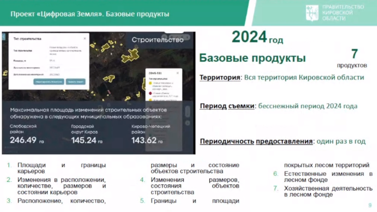 Продукты проекта «Цифровая Земля», разработанные дочерней компанией «Роскосмоса» АО «ТерраТех», позволяют мониторить и анализировать изменения не только в лесных угодьях, но также сельхозземель, в том числе неиспользуемых, проводить инвентаризацию, выявлять нелегальную добычу полезных ископаемых или застройку, а также участки возможного подтопления в период паводка. В том же время будет актуализироваться и пополняться база ЕГРН, расти налогооблагаемая база и контроль за имуществом региона.