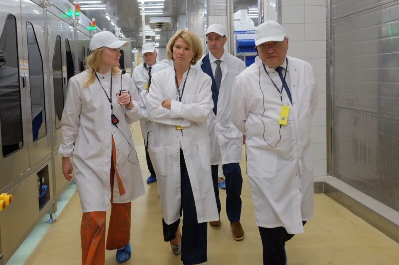 Министр посетила цех колбасного производства и новый цех полуфабрикатов. Вся производственная линия – от приготовления сырья до упаковки готового продукта – роботизированная. Автоматизация процесса решила проблему нехватки сотрудников.