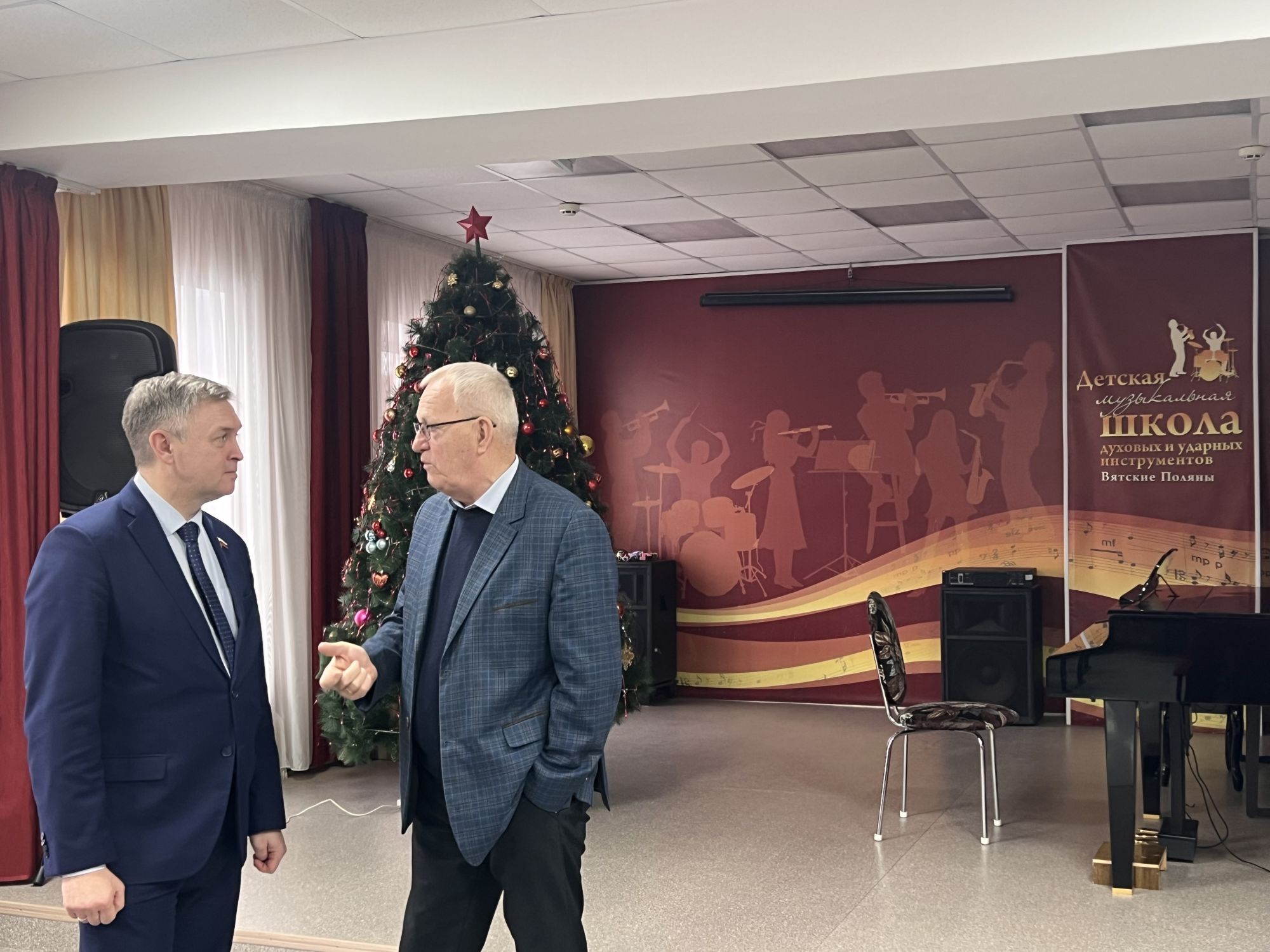 При стратегическом планировании необходим комплексный подход. Важно учитывать экономический потенциал, задачи по развитию инфраструктуры – как дорожной, так и социальной, а также предложения жителей. По такому принципу была составлена и программа выезда. Обсудив текущие вопросы с руководством города и района, Роман Береснев побывал на социальных объектах и на предприятии «Молот-Оружие», встретился с Почетным гражданином Кировской области Владимиром Трефиловым. Владимир Михайлович возглавляет детскую музыкальную школу духовых и ударных инструментов в городе Вятские Поляны и стал вторым жителем района, кому присвоено региональное звание. Роман Береснев поздравил директора с заслуженной наградой, узнал у него о планах школы на 2025 год.