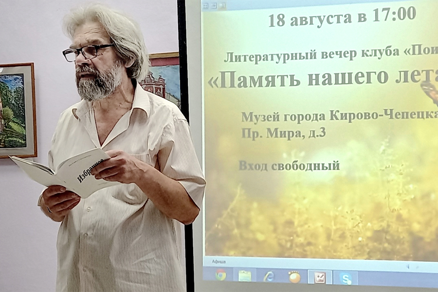 На днях члены кирово-чепецкого литературного клуба «Поиск» собрались в городском музее, где всегда рады творческим людям. На этот раз встреча под названием «Память нашего лета» была посвящена воспоминаниям о тех, кто когда-то был для «поисковцев» собратом по перу.