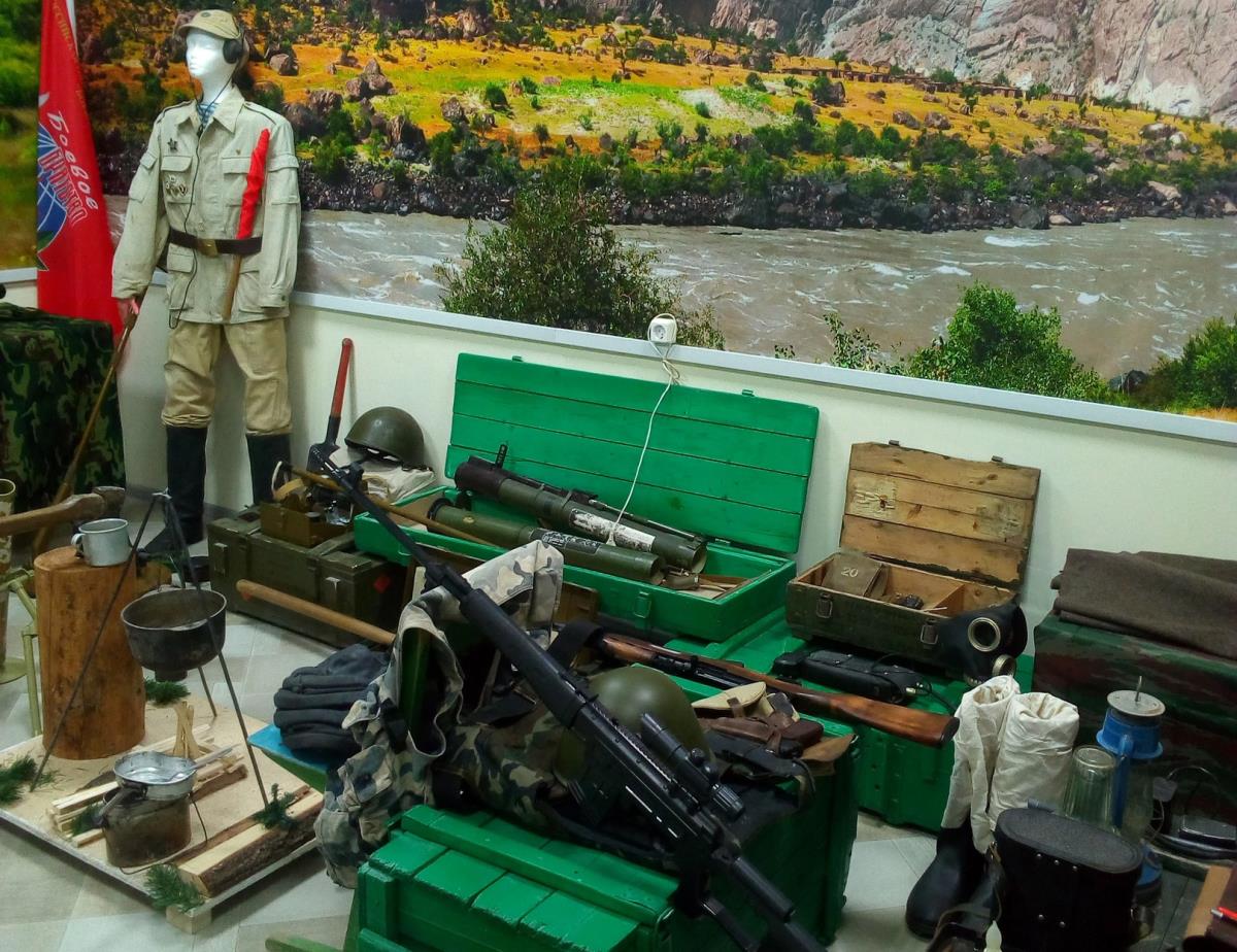 В музейной комнате воссоздана атмосфера, в которой приходилось существовать советским войнам в предгорьях Афганистана. В качестве кровати, стола, стульев — ящики из под оружия. Вместо одеяла — шинель. «Суворовцам» удалось собрать примеры вооружения того времени, различные виды мин, миноискатель. В экспозиции есть телефон, которым пользовались связисты, и командирская рация.