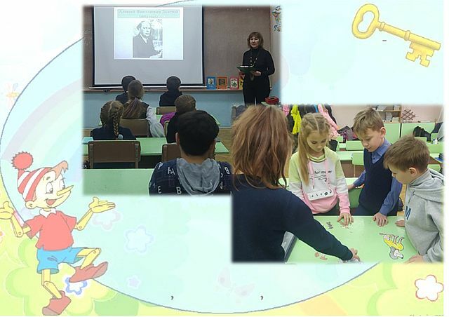 Повесть «Золотой ключик, или Приключения Буратино» написана Алексеем Николаевичем Толстым много лет назад, но и сегодня неутомимый Буратино завоёвывает любовь миллионов маленьких читателей по всему миру. Познавательный час об этом озорном деревянном мальчишке познакомил юных читателей с биографией А. Н. Толстого, историей создания книги «Золотой ключик или приключения Буратино». В ходе встречи ребята вспомнили черты характера главных героев сказки, решали задачи с Мальвиной, отвечали на вопросы Дуремара, узнавали сказочного персонажа по описанию, доставляли героям их потерянные вещи. В заключение дети познакомились с книгами Алексея Николаевича Толстого из фонда библиотеки.