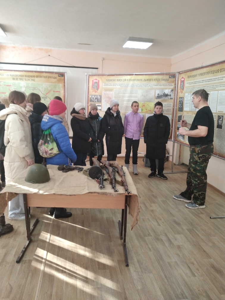 16 февраля заведующий сектором краеведения Центральной библиотеки организовала встречу школьников с руководителем кировского поискового отряда «Ветеран» В.А. Комлевым и поисковиком И.Г.Стужук, которые привезли с собой тематическую выставку " По крохам подвиг собирая...", посвященную боевому пути 1 Маневренной воздушно десантной бригаде. Школьники узнали о поисковой работе, которая направлена на то, чтобы не было забыто или потеряно ни одно имя героя, защищавшего наше Отчество. Поисковые экспедиции отряда «Ветеран» проводятся в тех местах, где во времена Великой Отечественной войны шли большие сражения. В ходе встречи для детей была подготовлена интерактивная выставка таких экспонатов как нагрудные знаки, медальон, советская каска, макеты оружий и многое другое. Ребята с любопытством разглядывали предметы, и особенно восхищались, когда держали в руках артефакт.