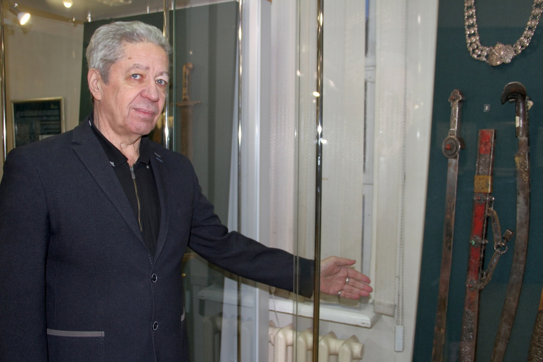 Тибетский палаш имеет подробное описание, однако в сведениях о сдатчике указана лишь фамилия. Вадим Брыляков рассказал сотрудникам, что владельцем ценного оружия был его отец – Виктор Брыляков. Он родился в 1921 году, участвовал в сражениях на Халхин-Горе и озере Хасан, в Великой Отечественной войне и в войне с Японией. Также он работал над созданием Кировского дендропарка.
