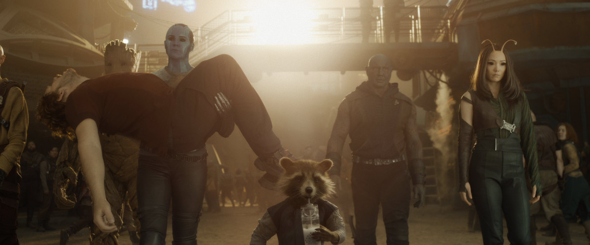 Дабы не спойлерить сюжет, скажу лишь, что третья часть действительно ставит точку в нынешней истории, но такую, которая автоматически катапультирует героев, хоть и не всех, в новую фазу развития их команды. Что в целом соответствует политике Marvel, которая строит свою Вселенную на определенных этапах. Действие нынешних «Стражей…» происходит после «Мстителей: Финал» и понятно, что нынешняя часть закрывает и нынешний этап всей Вселенной Marvel, одновременно перезапуская ее.