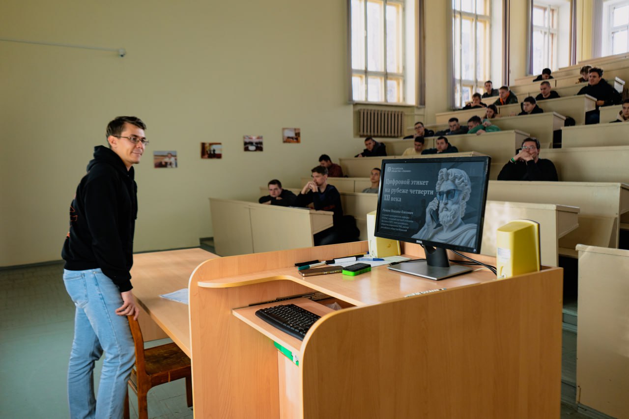 На этот раз лектор Российского общества «Знание», старший преподаватель кафедры информационных технологий Вятского ГАТУ Никита Олегович Рачеев прочитал лекцию о цифровом этикете на рубеже четверти XXI века.