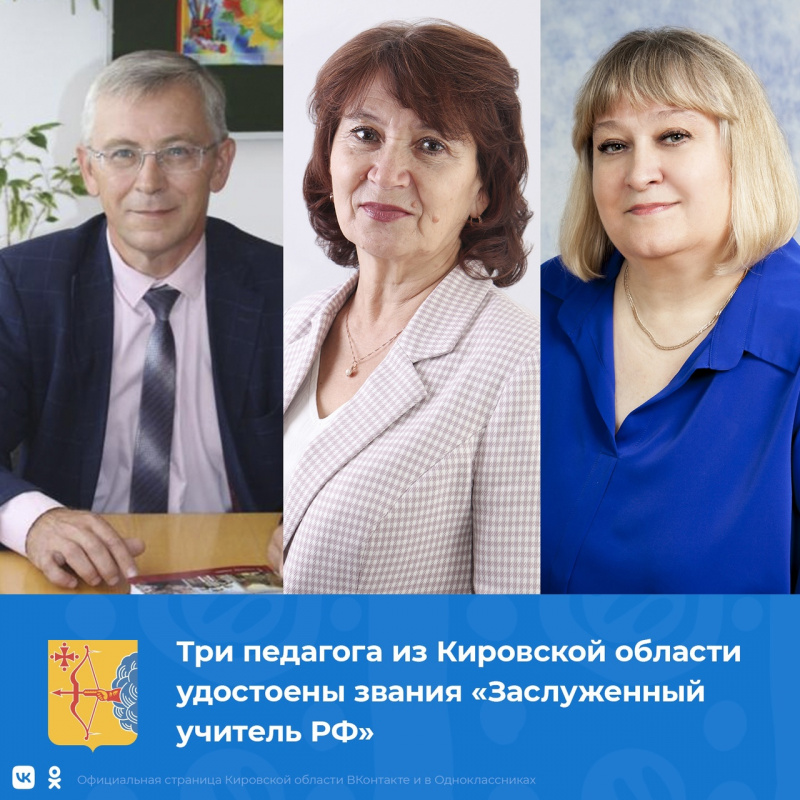 Сразу трое учителей из Кировской области удостоены Почетного звания «Заслуженный учитель Российской Федерации» в 2023 году. Это событие – признание заслуг педагогов, их многолетнего труда в деле воспитания подрастающего поколения.
