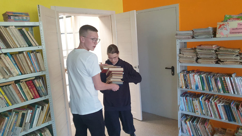 – В Центре патриотического воспитания имени Григория Булатова идёт большой ремонт. Сотрудникам Центра постоянно приходится перемещать книжный фонд из зала в зал. 26 июня курсанты «Стяга» помогли сотрудникам перенести литературу на книжные полки отремонтированного зала.