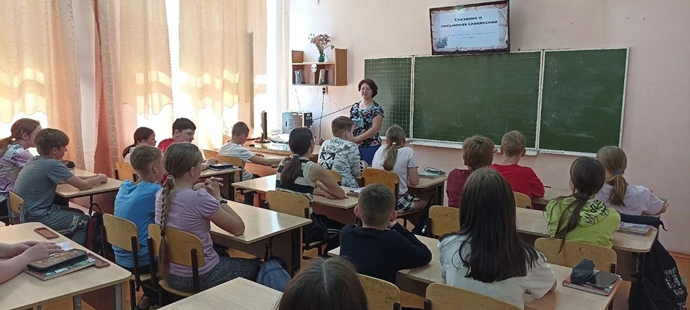 24 мая для учащихся 5 «Б» класса МКОУ СОШ с УИОП д. Стулово специалист Центра чтения детей и подростков провела урок «Сказание о письменах славянских», посвящённый Дню славянской письменности и культуры.