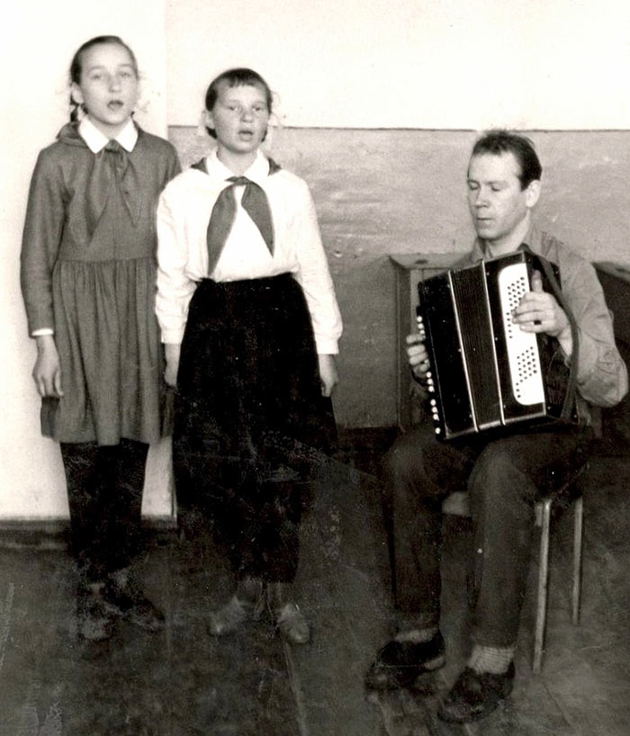 На фото с баяном – Николай Рылов, в прежние советские десятилетия преподававший музыку в школе села Ильинского, что на Слободской земле.