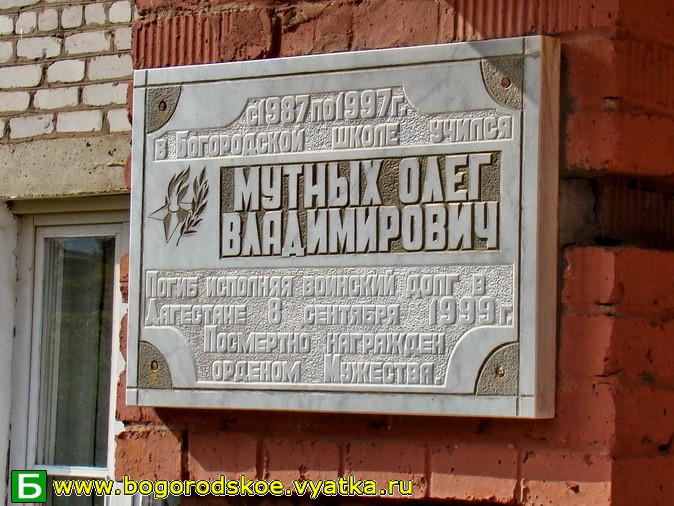 Сегодня, 8 сентября 2009 года, для учащихся школы, педагогов, всех жителей поселка – памятное событие. 10_лет назад скорбная весть облетела весь поселок. Погиб выпускник школы 1997 года Олег Владимирович Мутных. Олег был призван в ряды Российской Армии 25 июня 1998 года.