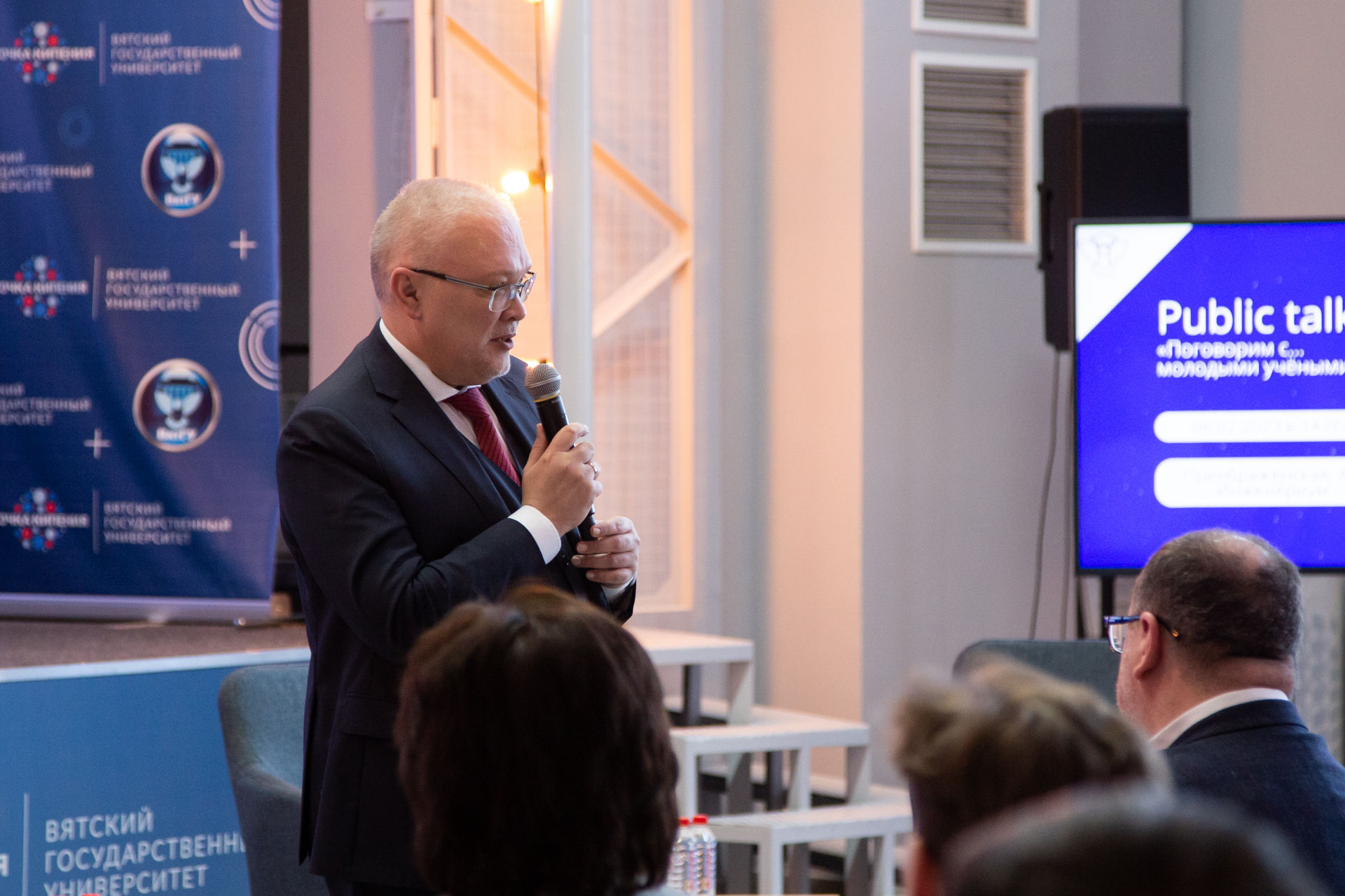 8 февраля в стране будет отмечаться День российской науки. В Вятском государственном университете этому празднику традиционно посвящается целый цикл мероприятий, значительная часть которых организована студенческим научным обществом вуза – одним из самых успешных не только в регионе, но и в России. Об этом напомнил проректор по науке и инновациям ВятГУ Сергей Литвинец, открывая мероприятие «Поговорим с…молодыми учеными»: оно состоялось 6 февраля в «Точке кипения» и прошло в формате publick talk.