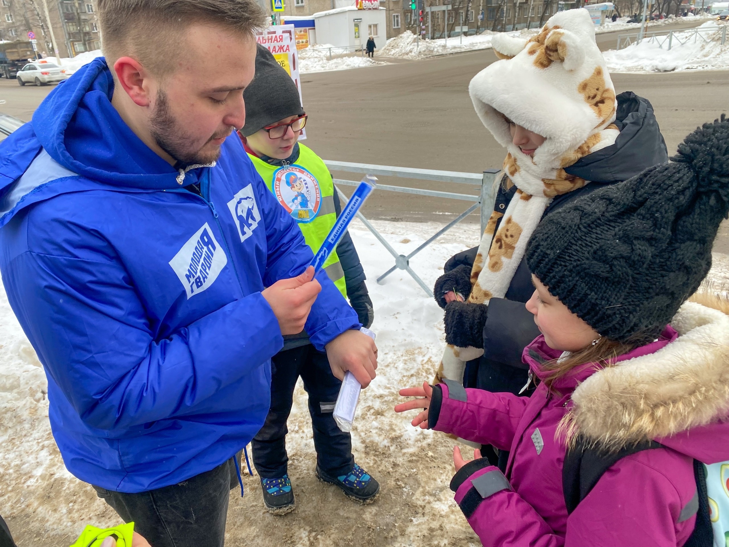 Сегодня, 23 января, активисты Кировского регионального отделения «Молодой Гвардии» и сотрудники ГИБДД провели акцию, направленную на пропаганду безопасности дорожного движения среди учащихся школ.
