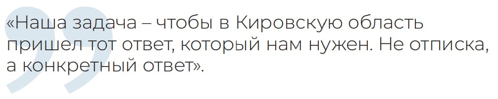 – Деятельность по транспортному сопровождению сейчас у нас факультативная. Основное направление сегодня – продвижение интересов Кировской области на всех уровнях, продвижение любых инициатив от региона в федерацию (центр принятия решений все-таки в Москве). Работа по федеральным программам, отдельно взятым продуктам, организация встреч, переговоров, выходы на те или иные структуры, к примеру, взаимодействие с Фондом развития территорий или федеральными министерствами – это всё сейчас у нас.