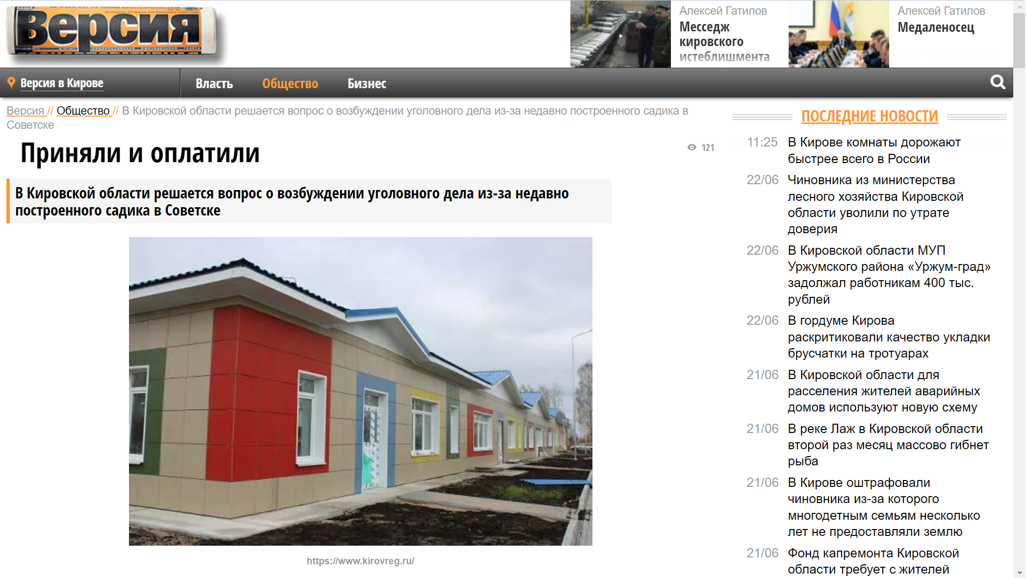 Между тем, по информации областного отделения КПРФ, губернатор Кировской области Александр Соколов и знать не знает, что его подчиненные приняли и оплатили недостроенный детский сад. Коммунисты уверяют, что Соколов считает, что детский сад официально принят. Получается, что губернатор не владеет ситуаций и попросту не знает, что администрация Советского района приняла недостроенный садик? В таком случае возникает вопрос — а о чем еще не знает губернатор? Владеет ли он реальной информацией о том, что происходит в области? Судя по ситуации в Советске, скорее нет, чем да. Или Соколов с самого начала знал, что садик не достроен? Ответить однозначно на эти вопросы может только сам Александр Соколов. Но комментариев на этот счет от него пока не поступало.