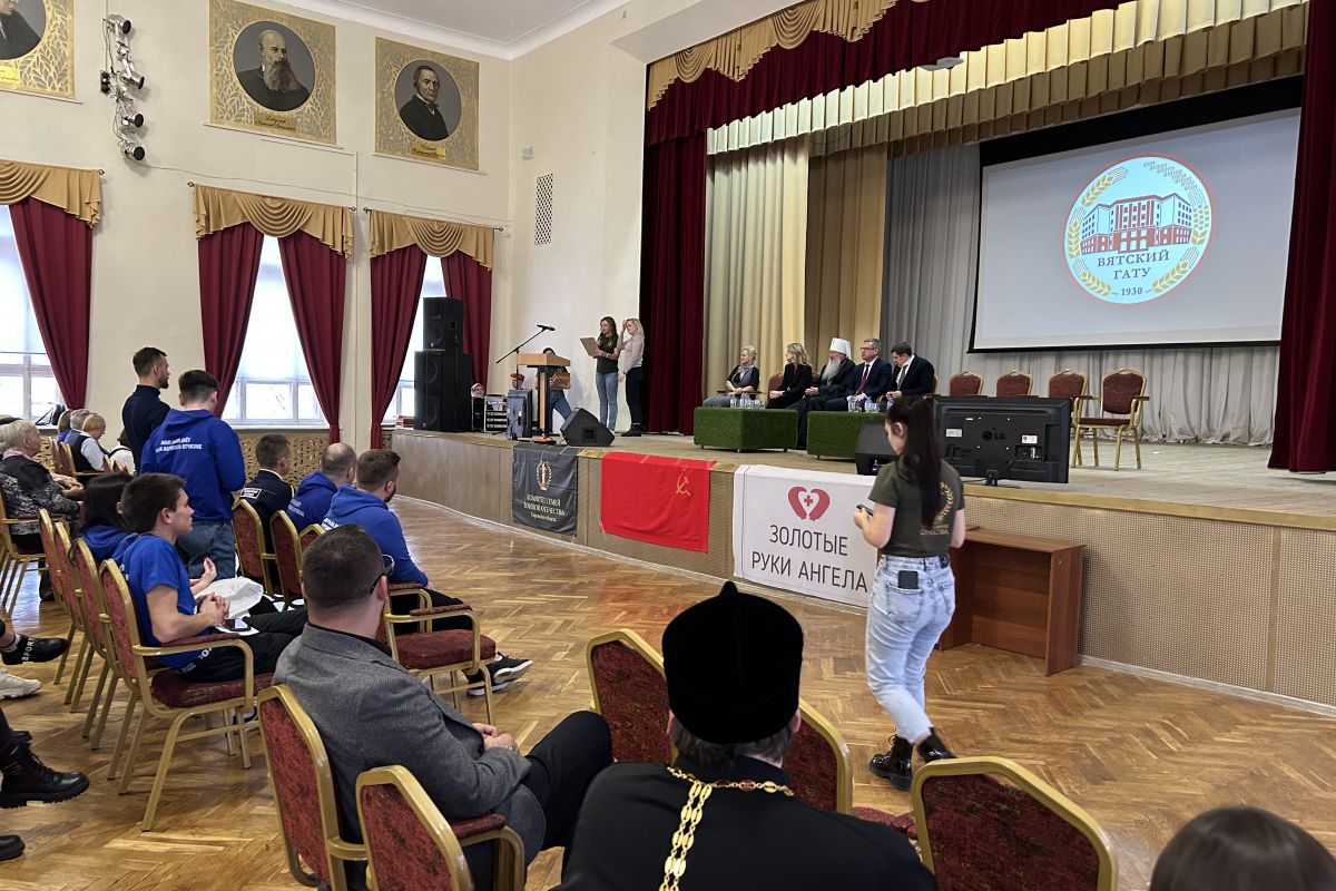 В приветственной речи ректор Вятского ГАТУ Елена Симбирских отметила, что 27 студентов вуза находятся сейчас на передовой. В университете действует свой центр гуманитарной помощи, центр волонтерского движения. Практически каждые два месяца из вуза отправляется гуманитарная помощь на фронт.