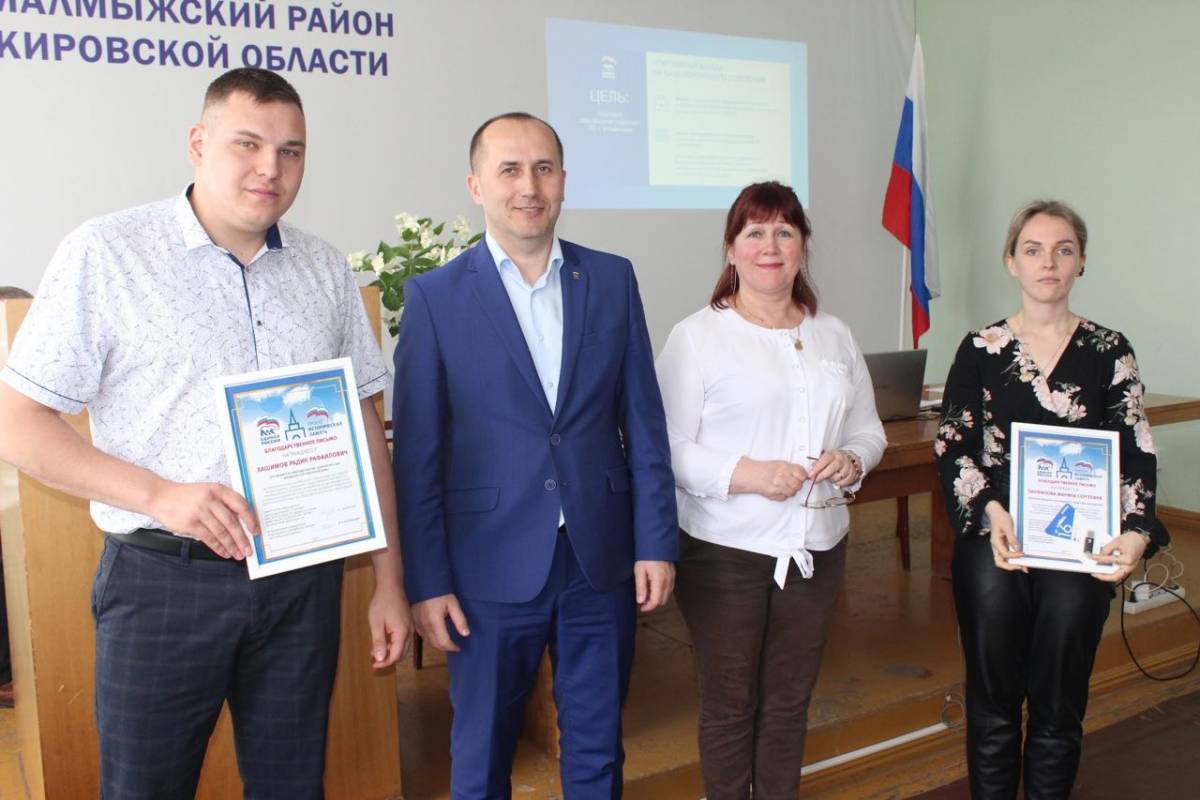 Партийный билет получил самый молодой глава Рожкинского сельского поселения Александр Пережогин, благодарственными грамотами областного уровня награждены члены Малмыжского местного политсовета: Радик Хашимов, руководитель фракции «Единая Россия» Малмыжской районной Думы и начальник Малмыжского районного управления образования Марина Панфилова за сохранение исторической памяти малмыжан.