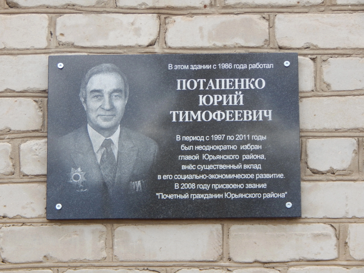 12 мая у здания администрации района состоялось торжественное открытие мемориальной доски в честь Почетного гражданина, экс-руководителя Юрьянского района Потапенко Юрия Тимофеевича.