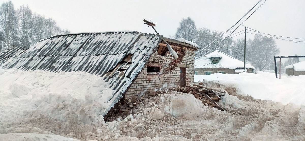Сильнейший снегопад обрушился сегодня на посёлок Богородское. Несмотря на то, что власти предупреждали и просили очистить ветхие крыши зданий,