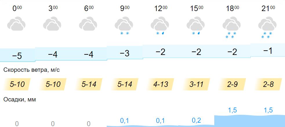 Весь день ожидается пасмурная погода и снег с дождем.