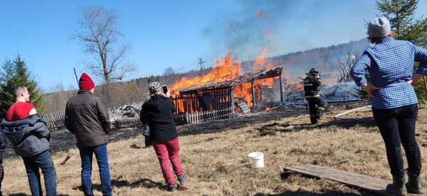 В селе Монастырское Юрского района Кировской области произошел пожар. Очевидцы сообщили, что едкий дым поднимался с расстояния 500 метров.