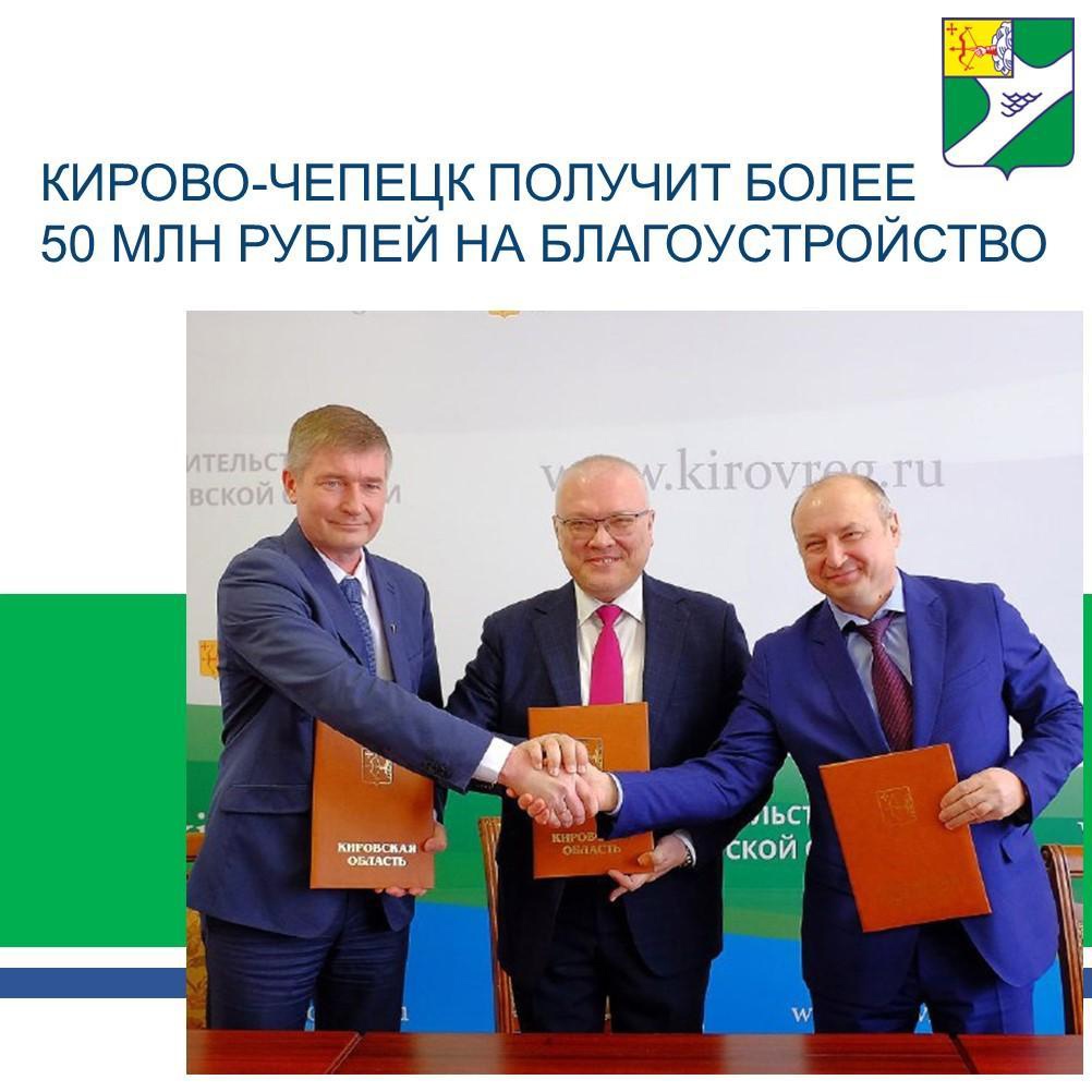 Сегодня в правительстве Кировской области состоялось подписание социального соглашения, по условиям которого региональное правительство и компания «Уралхим» перечислят в Кирово-Чепецк средства на реализацию мероприятий по благоустройству дворовых и общественных территорий. Всего городу будет направлено более 50 млн рублей, из них 25 млн рублей — средства, безвозмездно переданные от компании «Уралхим», и 25 млн рублей – средства, предоставляемые правительством Кировской области. Еще более 250 тысяч рублей выделяет администрация МО «Город Кирово-Чепецк».