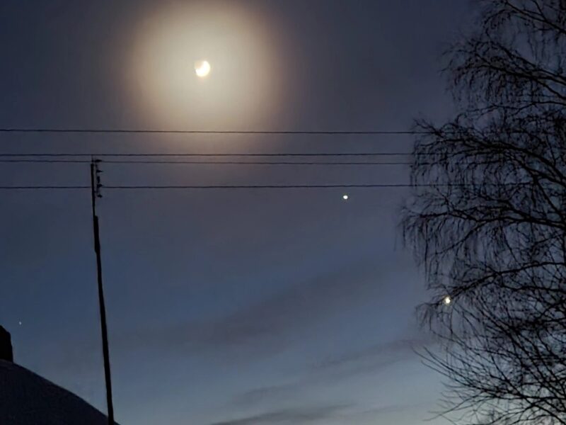 23 февраля жители региона смогли наблюдать на небосклоне явление, которое в народе называют "три Луны". На самом деле, в этот день произошел парад планет - вряд выстроились Луна (месяц), Венера и Юпитер. Последние два объекта были необычайно яркими на ночном небе.
