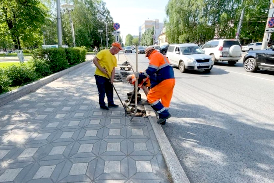 « На сегодня определено сорок участков, которые необходимо привести в порядок. Точечный ремонт тротуаров проводим своими силами и с привлечением подрядных организаций. В течение дня удается устранить дефекты на пяти-десяти объектах. Где-то ремонтные бригады восстанавливают бортовой камень, меняют или перекладывают брусчатку. К примеру, сейчас работы ведутся на улице Карла Либкнехта у Театральной площади », - рассказал начальник дорожно-строительного участка ГДМС Максим Егоров.