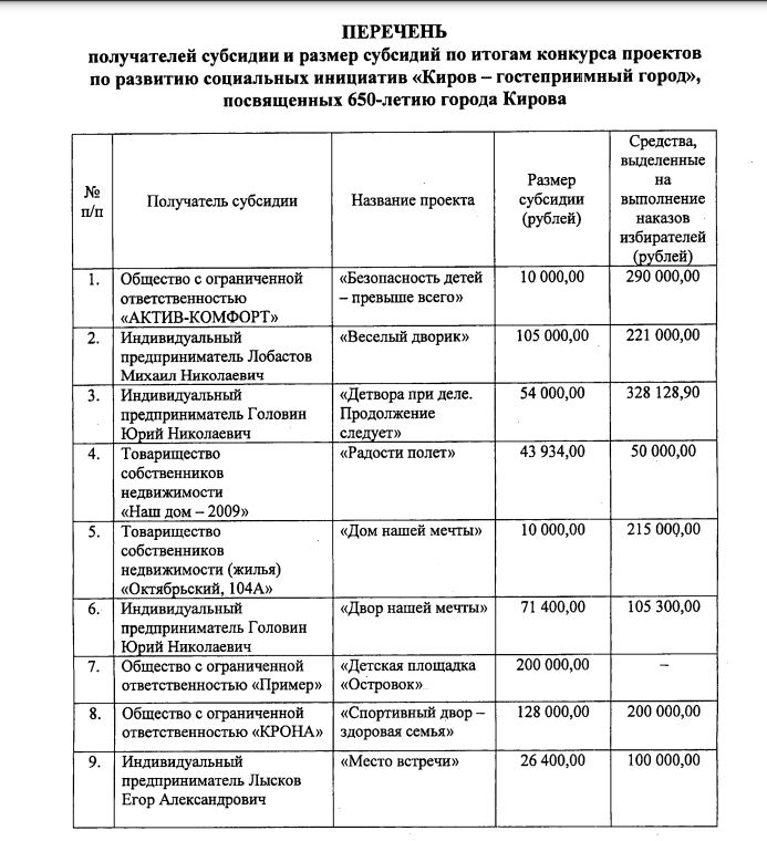 В список победителей вошли 22 проекта. Для каждого указан и размер субсидии.