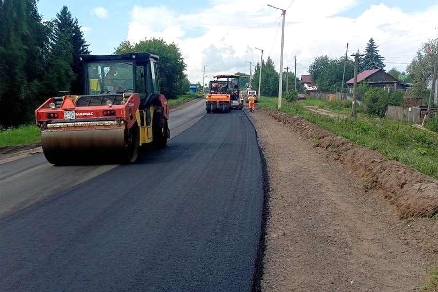 АО «Гордормостстрой» приступило к укладке асфальтобетонного покрытия на участке дороги «Киров - Русское» от деревни Першино до посёлка Костино.