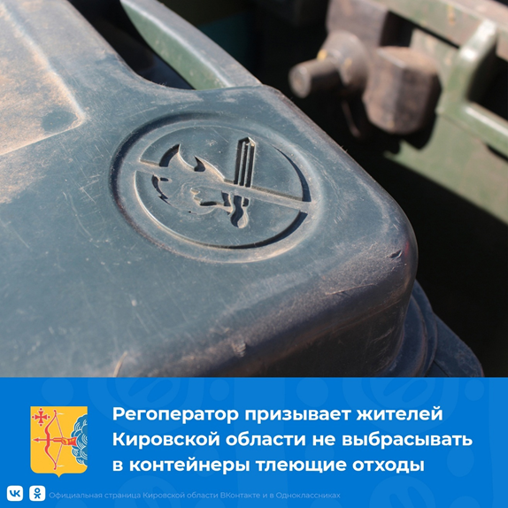 Региональный оператор АО «Куприт» просит жителей Кировской области не выбрасывать в контейнеры тлеющие отходы, горящие окурки, легковоспламеняющиеся предметы,