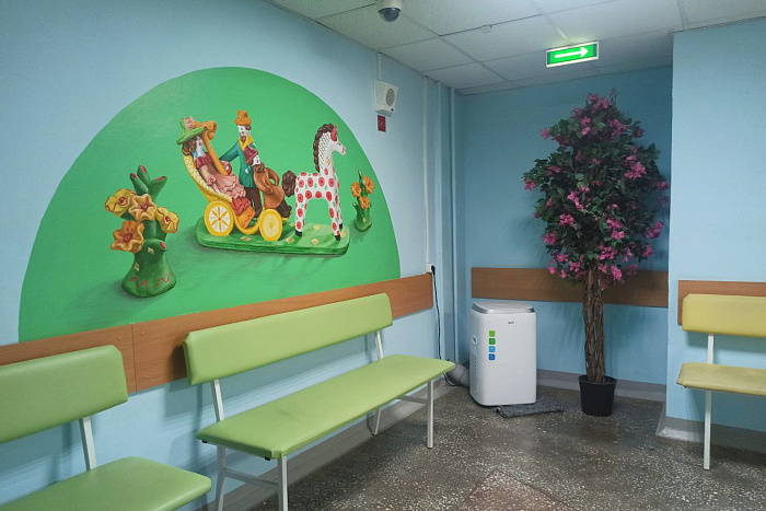Поликлиника Центра травматологии была украшена рисунками Дымковских игрушек