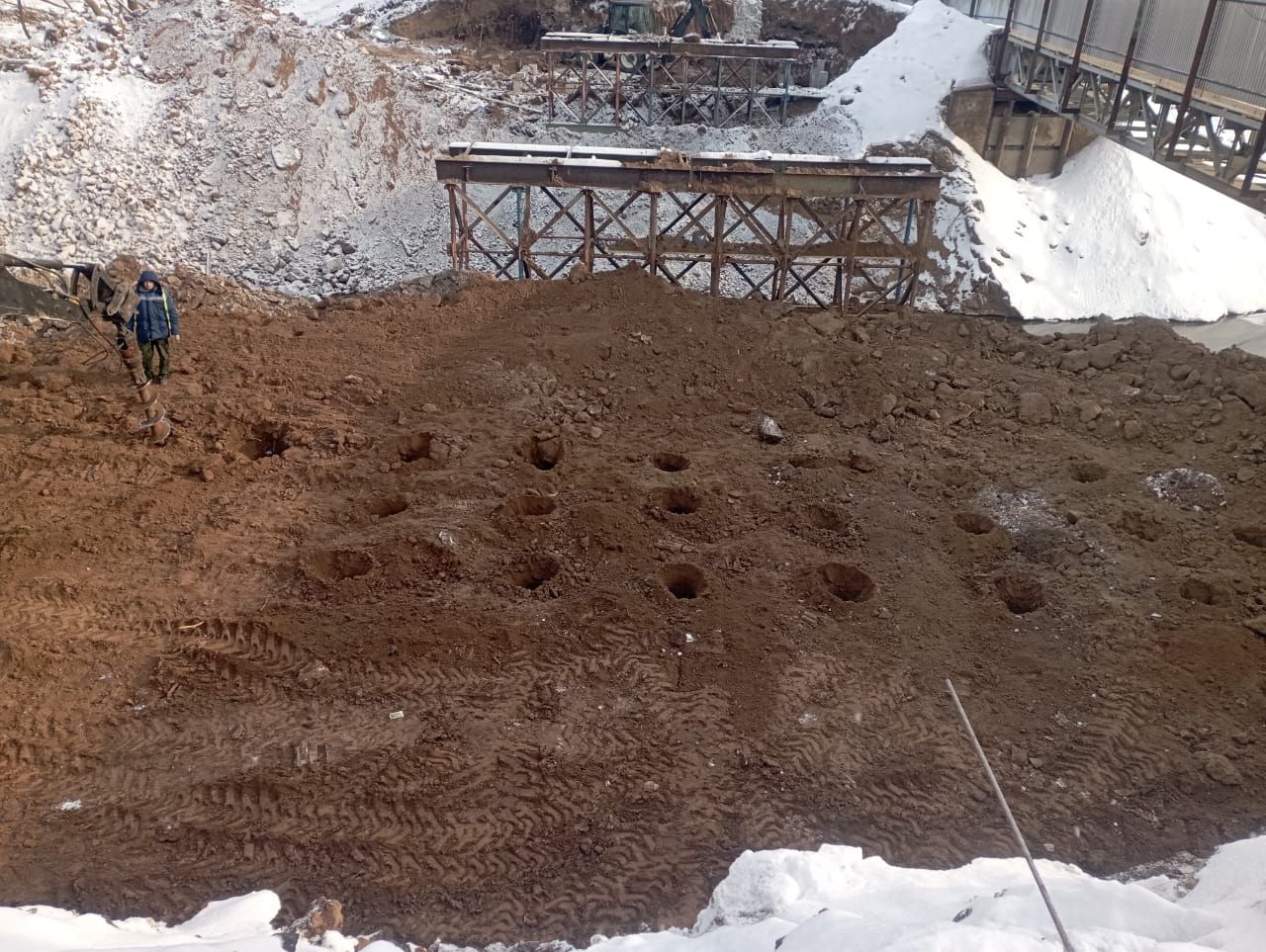На данный момент площадка расчищена от деревьев и кустарников, демонтирована старая конструкция, перенесены линии электропередач, ведется работа по установке свай. Об этом сообщили в министерстве транспорта Кировской области