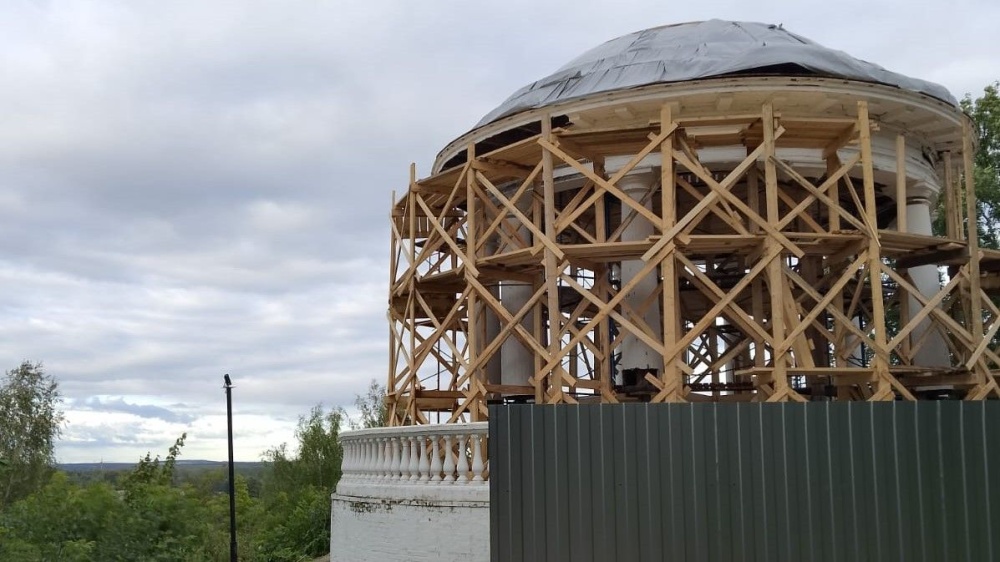 - Уже заказан необходимый пиломатериал для замены конструкций. Ожидаем, что во вторник бригада возобновит работы по восстановлению на центральной ротонде, сейчас возводят строительные леса.