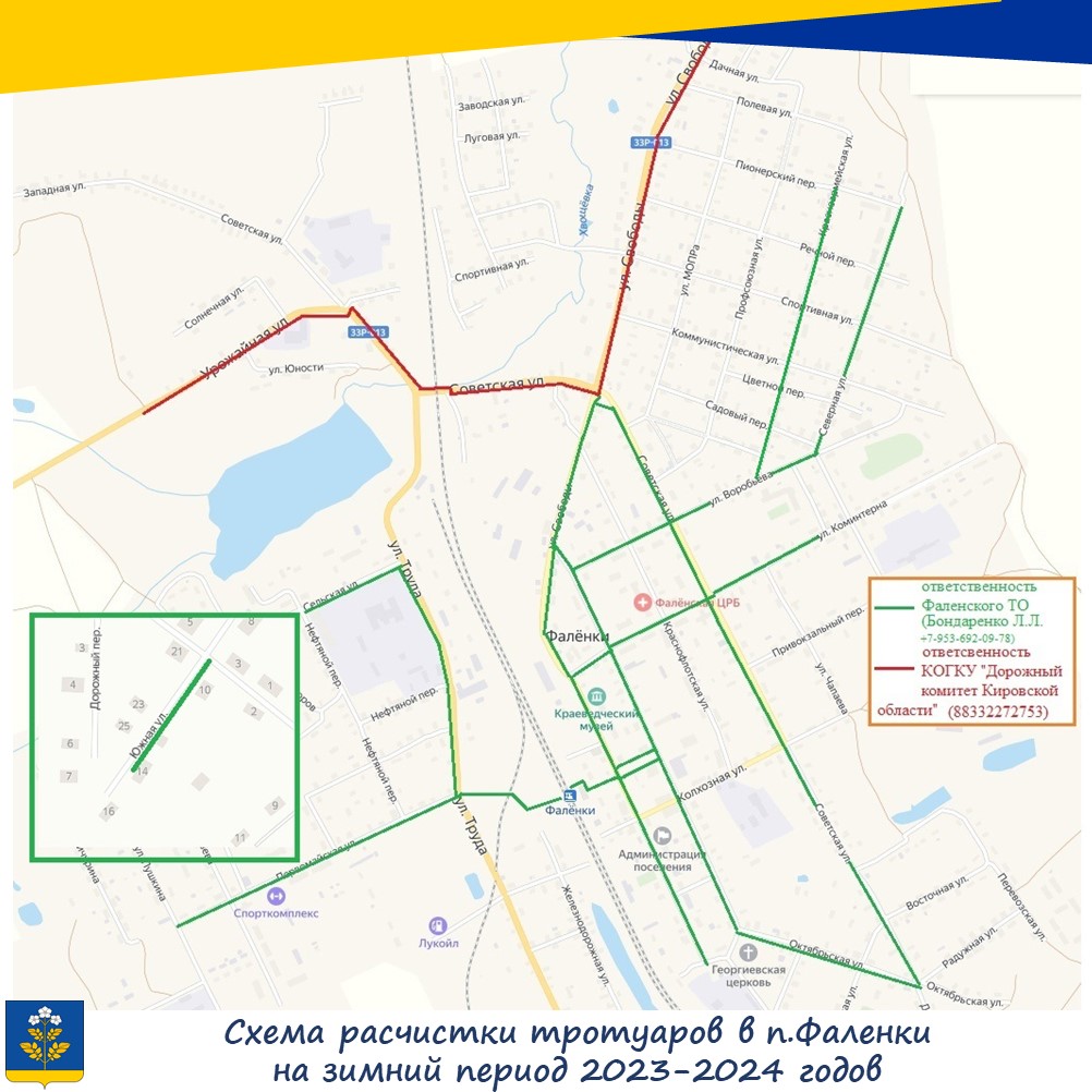 Схема очистки тротуаров поселка Фаленки на зимний период 2023-2024 годов