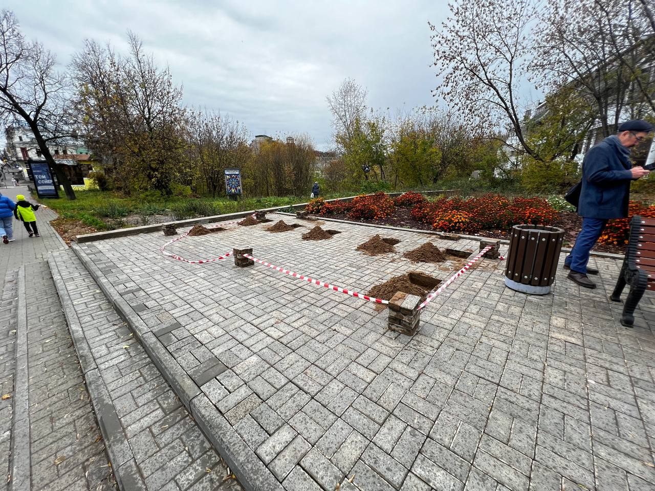 Также, судя по ямкам на брусчатке, остановчный павильон будет не очень большим и явно не соответствует тому остановочному павильону, который можно построить за те два года, которые прошли с момента сноса старого. Напомним, что глава администрации города Вячеслав Симаков, обсуждая данный павильон с ведущими программы "Дневной разворот" на радио "Киров Град" заявил, что администрация намерена поставить на этой остановке временный павильон , чтобы впоследствии за счет партнерства с бизнесом установить действительно хороший павильон, в том числе оснащенный помещениями для осуществления коммерческой деятельности.
