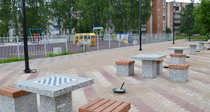 В чепецком парке "Южный" появились столики для игры в шашки и тренажеры