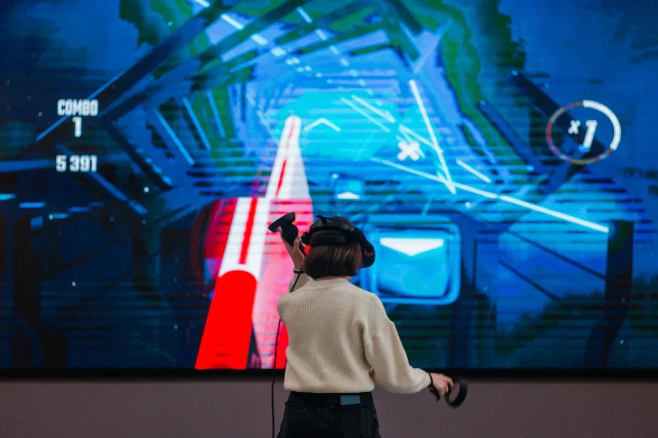 На следующий день в Инженериуме ВятГУ (Преображенская, 41) проходили соревнования по Just Dance и Beat Sabre. Just Dance - это игра, в которой нужно танцевать, повторять за движениями персонажа на экране. В руках у игрока находится специальный контроллер, через который игра и улавливает движения танцующего.