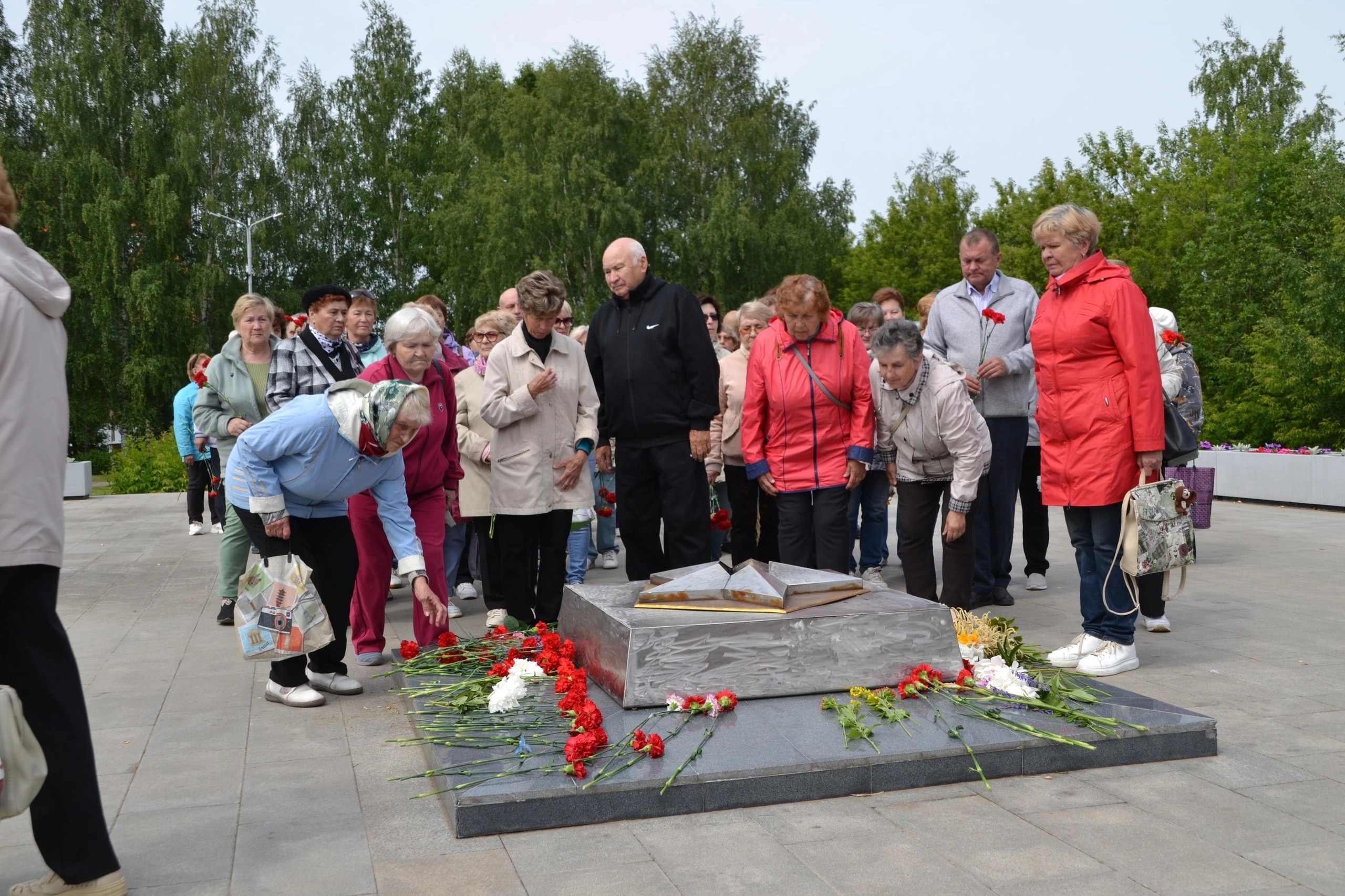 Сотни чепчан почтили память погибших воинов минутой молчания и возложили цветы к Вечному огню.