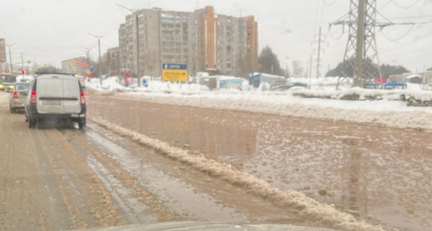 В Кирово-Чепецке затопило улицу из-за прорыва трубы