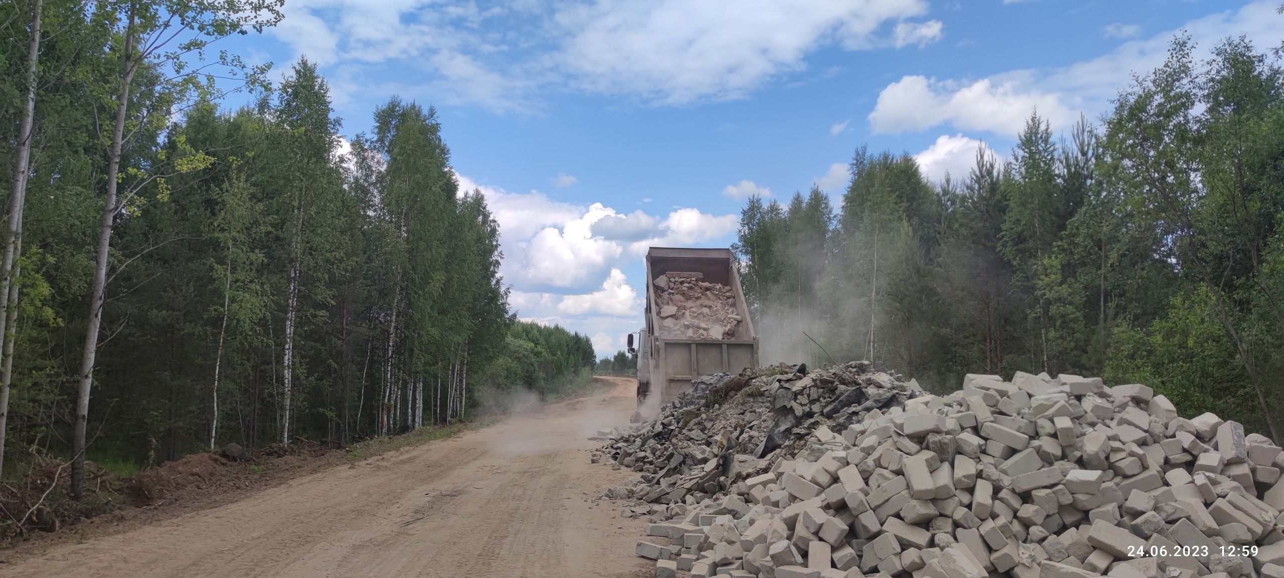В селе Пищалье Оричевского района дороги предположительно ремонтируют строительным мусором из «Марадыковского»